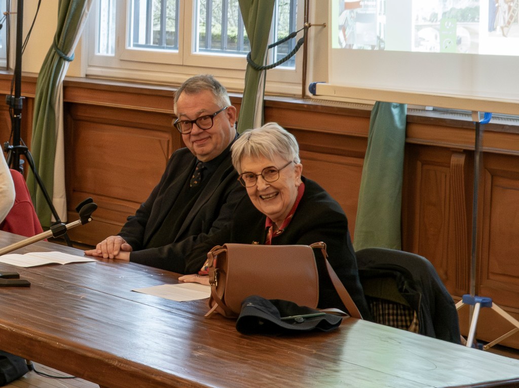 Nous avons pu écouter les mots encourageants de notre marraine, l’historienne Claude Gauvard qui nous fait l’honneur de nous accompagner dans cette aventure.